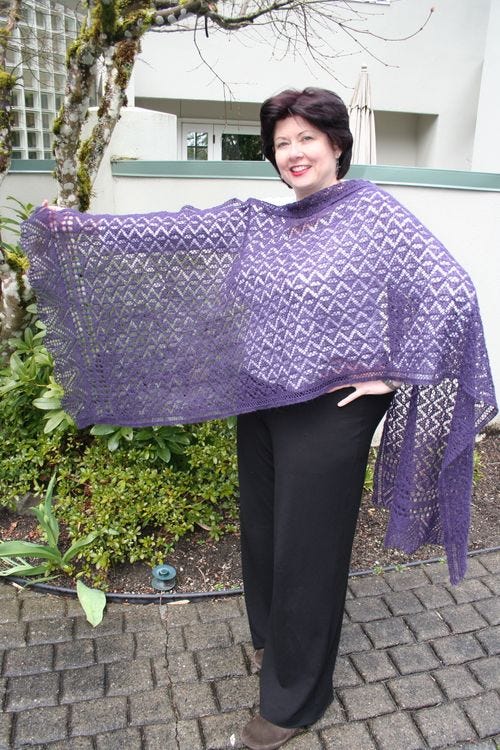 And I need more lace yarn. I didn't blog this before, but while we were on the ship, someone made off with my Langsjal Jóhönnu shawl. I had it at dinner one night, and had it across the back of my chair. The next day I didn't have it, and nobody ever turned it in to lost and found. If you see it on anyone, grab the damn thing off her back and shoot me an email.