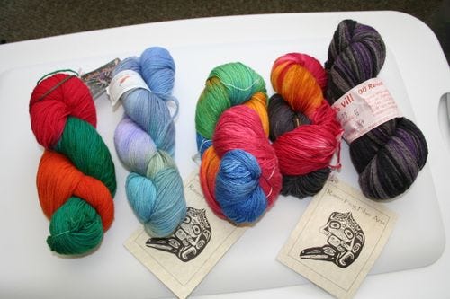 I've discovered that when you've got nothing for the blog, post photos of loot. On the Alaska trip, I managed to find a few yarn shops. One in every port, as a matter of fact.