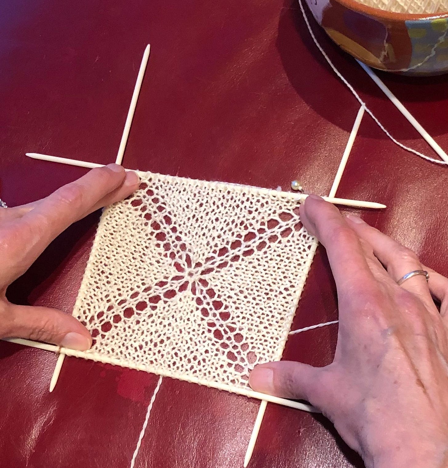 So how about some knitting, since this is a knitting blog? I finished the last lace baby surprise thing, it just needs blocking. No photos of that, then. I started another lace baby surprise thing.