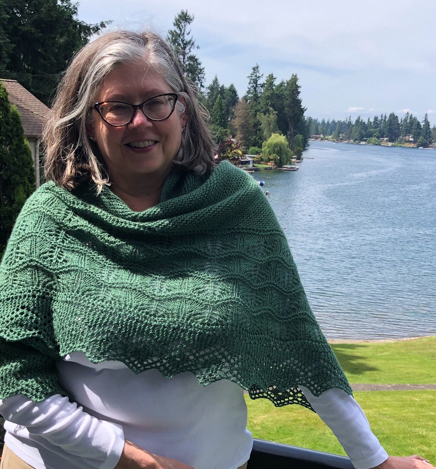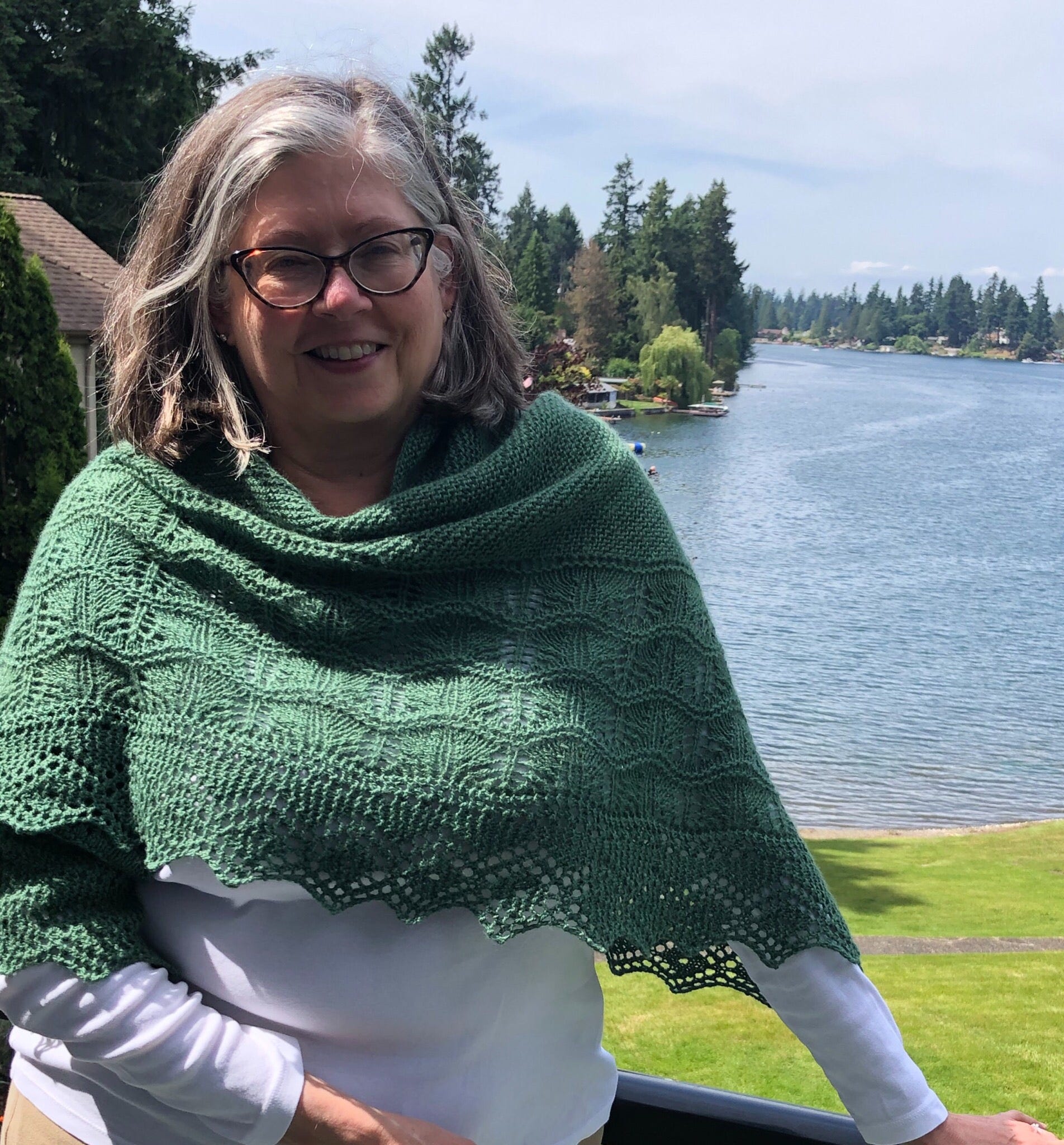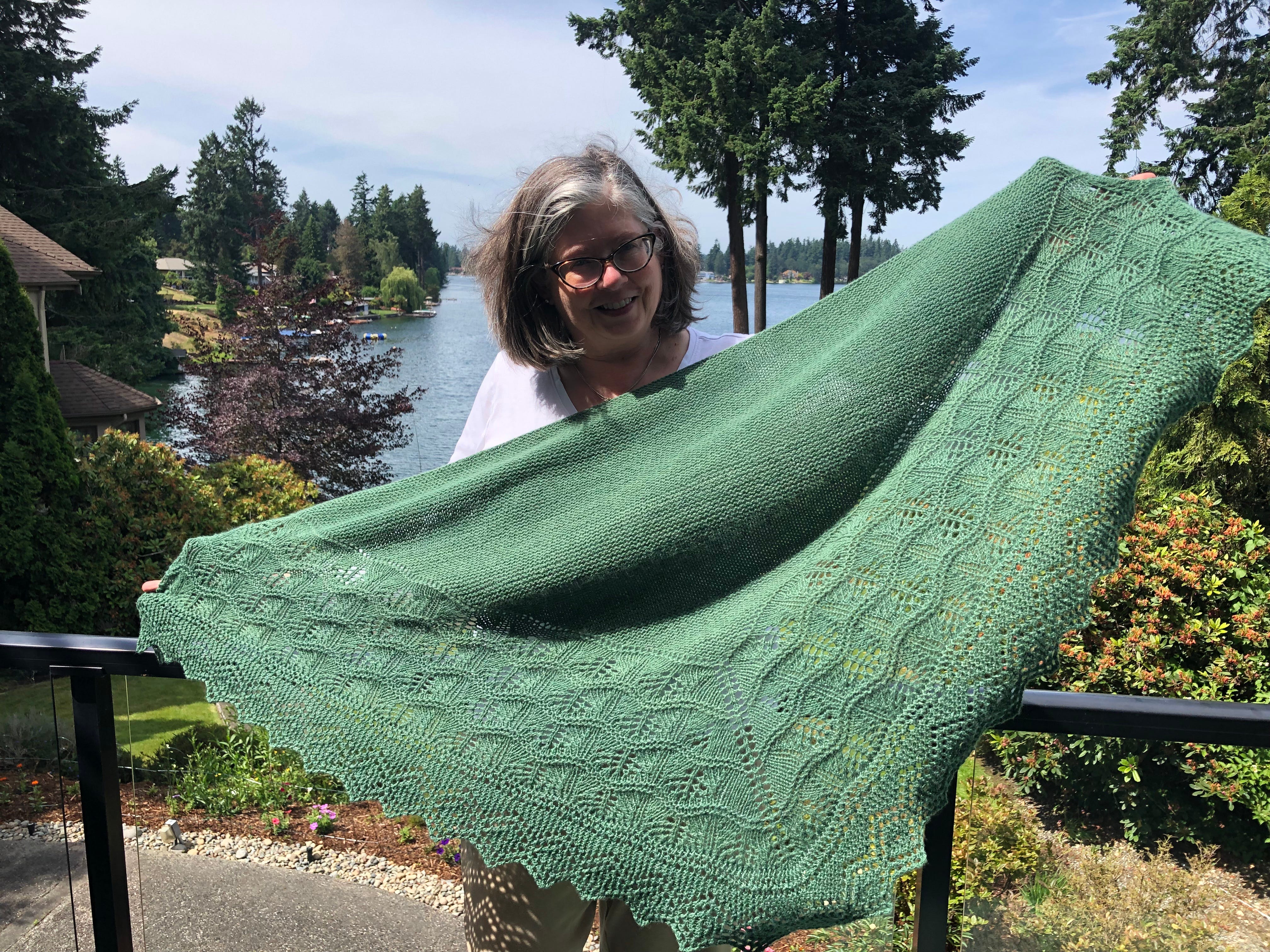I love knitting and wearing shawls. Even in the summer around here it is often cool enough to have something snuggly and pretty around my shoulders. This will keep me warm during cocktail hour on cool evenings.