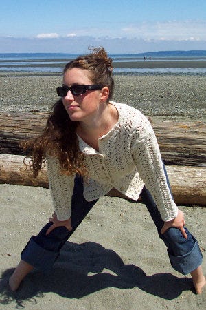 Elann has Pakucho Organic Cotton on sale, and I bought enough in Forest to make this cardigan: