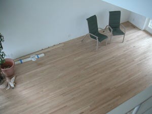 Here are a few pictures. Where our living room used to be is now a dance hall. We tried it out the other night after a few bourbons, and I think we'll turn it back into a living room. Note the classy furniture.