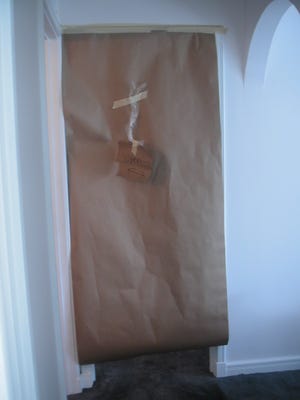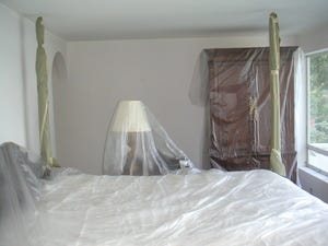 Our bedroom, wrapped in plastic.