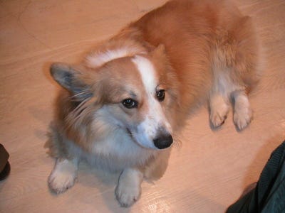 We received some very sad news over the weekend. If you've been visiting here regularly, you've met Daisie, our neighbors' Corgi. She and Riley were best friends, since my husband would pick her up on the way to the park almost every day over the last year. Daisie was hit by a car on Sunday, and died instantly of her injuries. She was just the sweetest dog I've ever met, and we'll all miss her greatly.