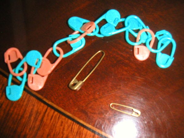 Pins. I have lots of these. My favorites are the no-coil safety pins, though I like the plastic ones also.
