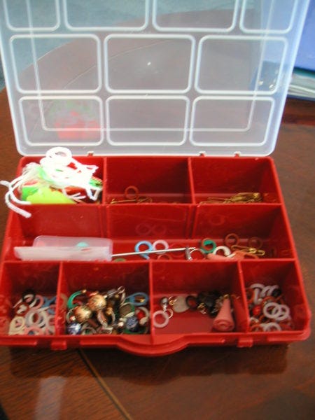 And a box in which to keep everything. This is from the hardware store...another great place to find knitting notions.
