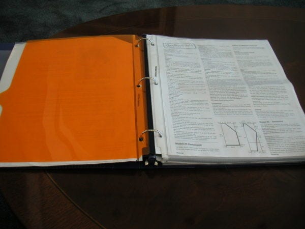This is my current knitting project notebook. I have separate tabbed sections for each project, with a copy of the pattern, and loose leaf paper to take notes. I keep a ball band from each project in the pocket in the front, and I have a zippered canvas pocket that fits into the binder to keep a pencil or anything else that I need to carry around. I've looked at some of the ready-made knitting journals that are available, but this is just more functional for me.