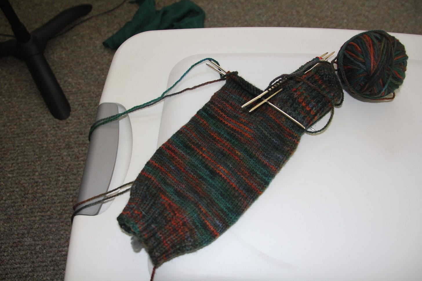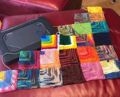This has no deadline. This is the "potato chip" project. If I'm on track to get everything else done, I can do a square or two of this. I never thought I'd say this, but knitting sock yarn squares is a blast.