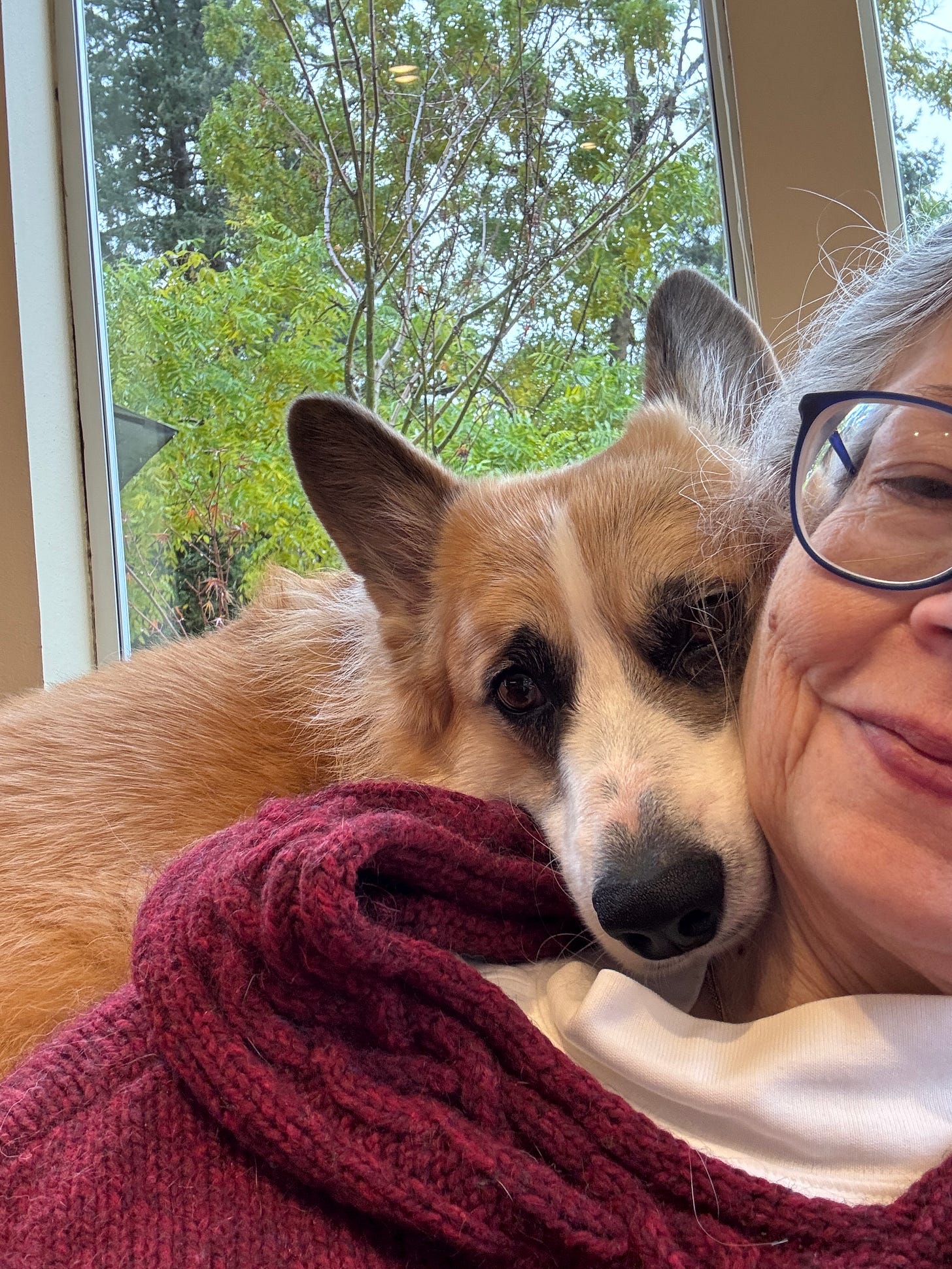 And there he is this morning. He’s not a typically snuggly pup, but sometimes the boy just wants to be close to his mom.