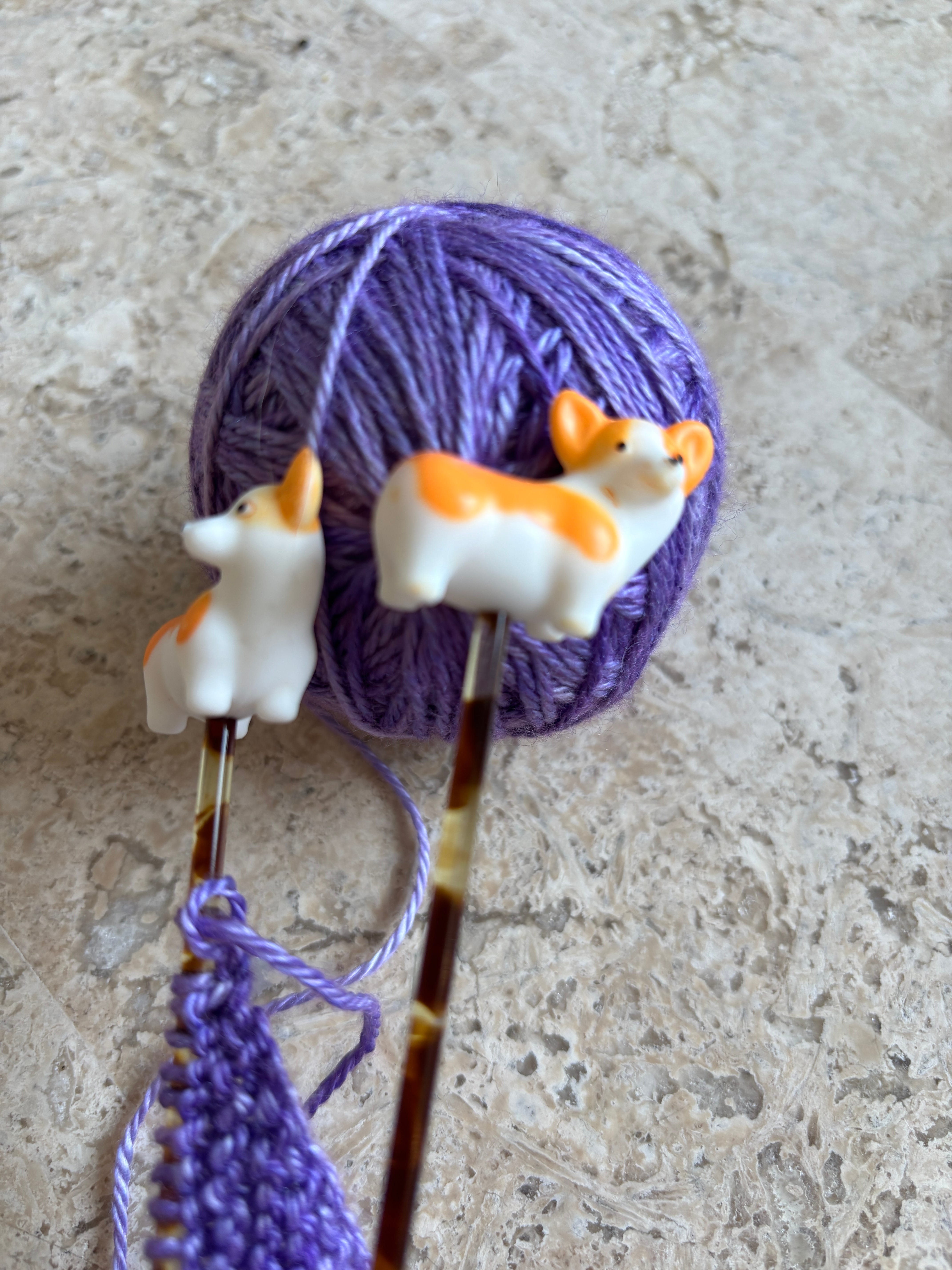 Here is today’s. I ordered some yarn last week and noticed these little knitting needle tip protectors. Corgis! How could I not buy them?