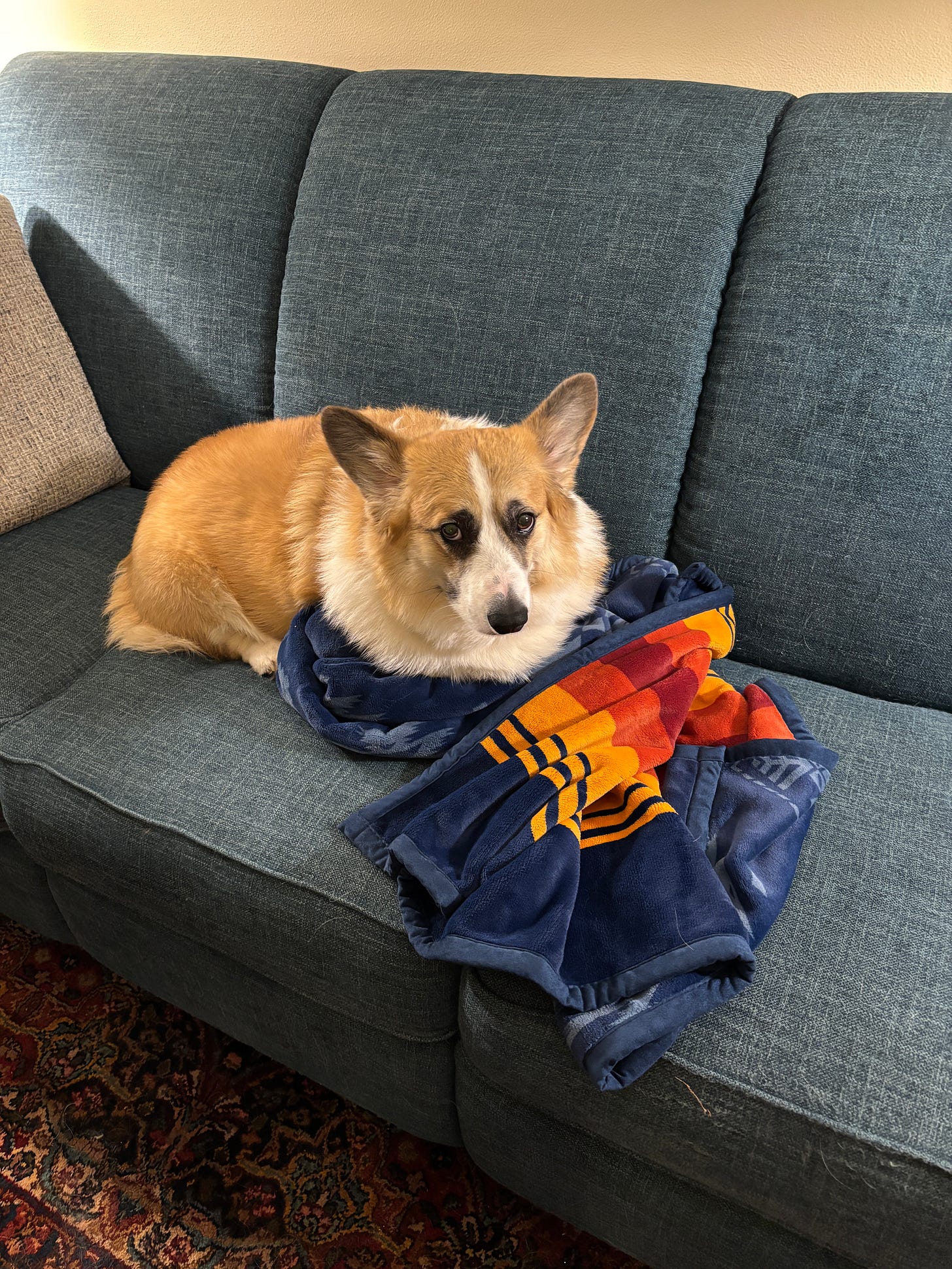 Here’s the resident corgi for reference, exercising his couch privileges (about the only kind of exercise he enjoys- he’s a lazy potato).