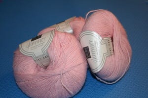 It's pink, very pink. And alpaca, and it has just a touch of a silvery glimmery yarn spun into it. This will be a pretty little scarf, perhaps all for me. This is where we need that "touch me" feature in Typepad; this stuff is heavenly soft in person, not so much in the picture.