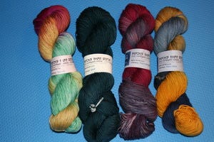From left to right, Yosemite, Spinel, Prove It All Night, and Heavy Metal. Only the fact that I already have enough sock yarn to last the rest of my life kept me from buying more. One of these will just have to be the next pair of socks once I finish the two pair I already have cast on.