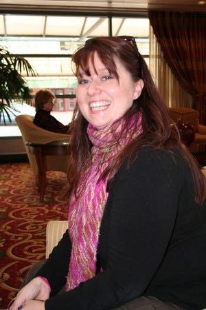 That's Meg, from Knitting Knot. Go to her blog and tell her how sorry you are that we made her unravel a whole sweater on the spot. What are friends for??