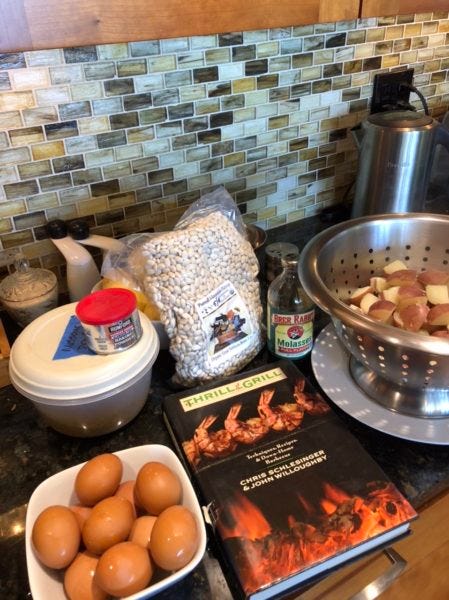 There will also be potato salad and homemade cheddar biscuits, with lots of beer to wash it all down. John found fresh corn on the cob at the market yesterday, so we might do some of that too. You can't have too much food at a picnic, I always say. I am definitely my mother's daughter in that regard.