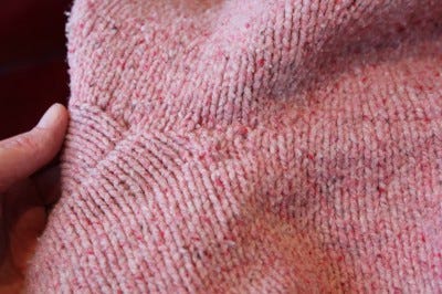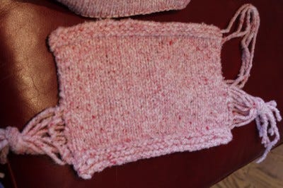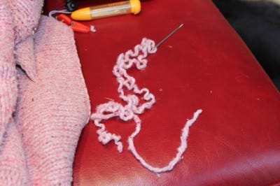 My swatch! After some unraveling to get one continuous thread I was ready to go.