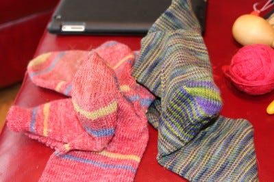 Last but not least, a couple of pairs of socks. They've been in the mending pile for awhile, both with very thin nearly gone heels.