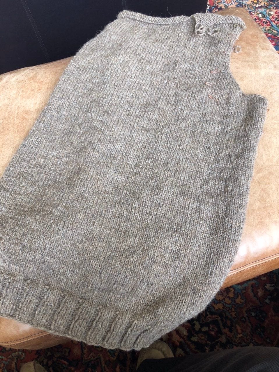 I finished the back piece of my new cardigan sweater this morning. That means the whole thing is about a third done. Fronts and sleeves left to knit, then the sewing up.