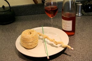 Then I had a little mishap and it ended up looking more like ramen noodles. The mishap had nothing to do with the pink wine in that photo. Since I'm making this one up as I go along, I didn't like the first iteration, and decided on a do-over.