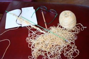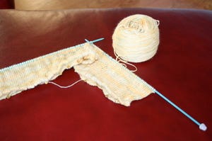 Now, my new project. I am using South West Trading Company's Bamboo, in a color called Butter. The color is actually more like real bamboo than butter. If you've ever been unfortunate enough to have the stuff growing in your backyard, you know what it looks like. I can only hope bamboo yarn really takes off. I have a bunch of it growing wild along my side yard fence. It could be an investment.