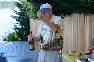 Here's John opening the refreshments. There were also Bloody Marys (Maries?) involved.