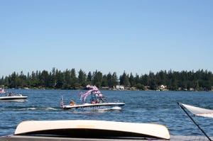 But first, a few photos from the 4th. A bunch of the boat owners on our lake have a boat parade late morning on the holiday, so we turned out to the beach with a few friends and some refreshments to watch.