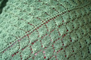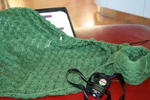 Next is the Forest Canopy shawl. I really have made progress, it's just hard to tell, being a lace shawl and all. This is Zephyr wool-silk, in Bottle Green. I thought it was Basil, but I'm pretty sure it's the former. I love this color enough to buy more of it.