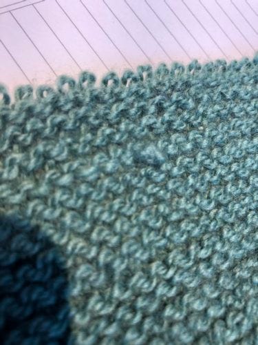 About two inches back, I noticed a couple of wacky yarn loops, but chose to ignore the better angel on my shoulder. The evil guy on the other shoulder kept saying "oh that will block out".