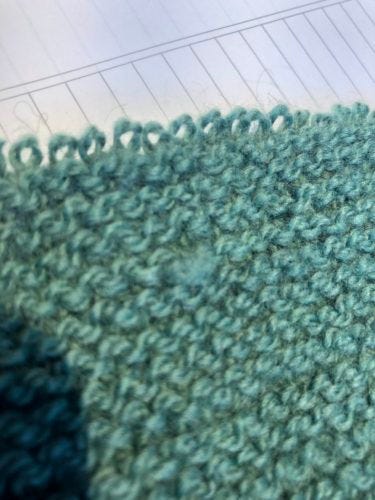 No, nobody died. I am knitting away on the big garter triangle section of my Balvraid Hap.