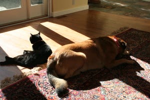 I haven't figured out even a quarter of the features on my new camera, but that hasn't stopped me from trying. The pets are getting a little sick of getting their pictures taken. Lucy has gone into the witness protection program again, and I can't find her to get a shot, but here are the other two doing what they do best, during one of those famous Pacific NW "sunbreaks".