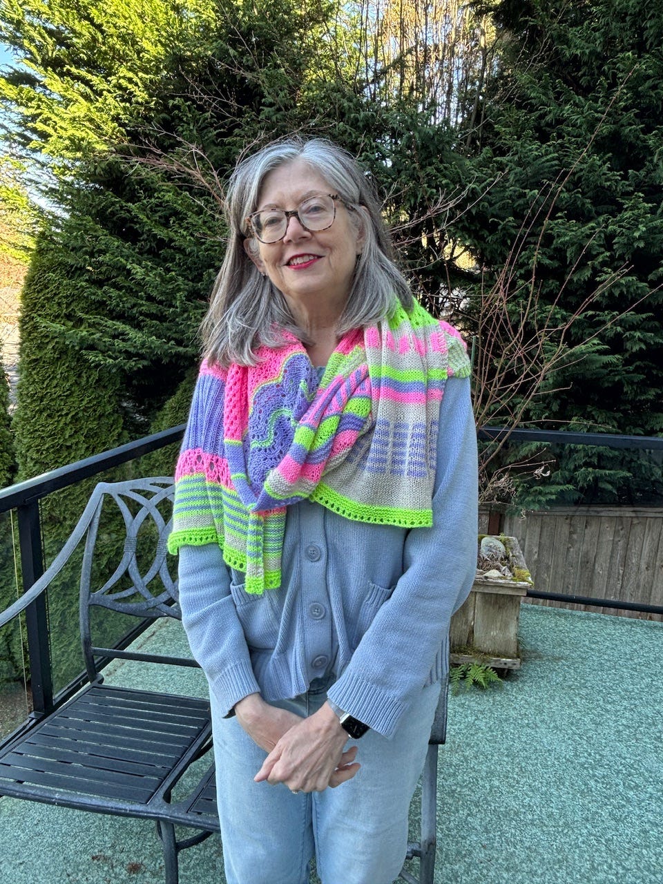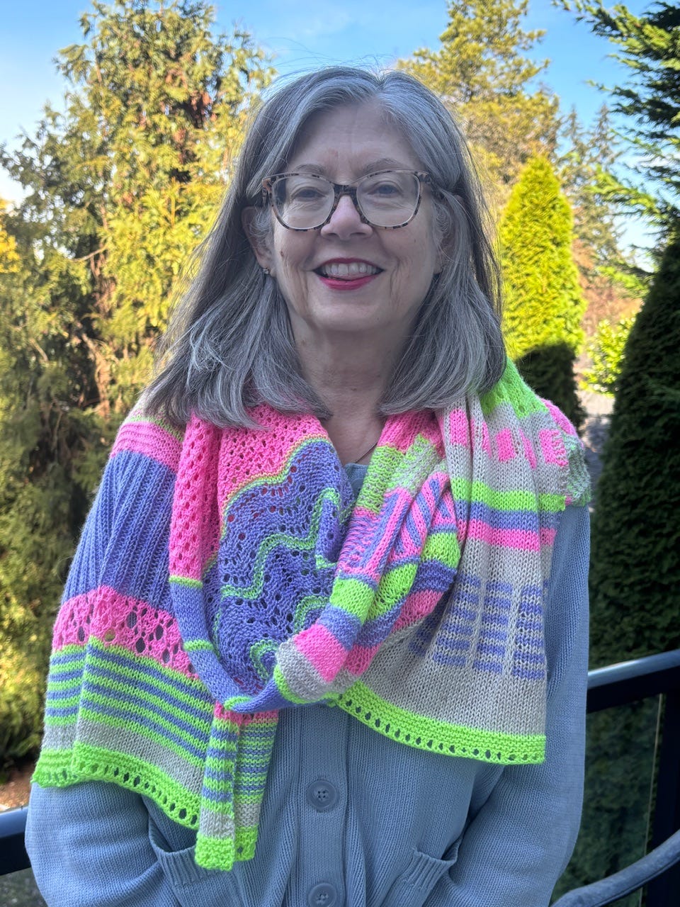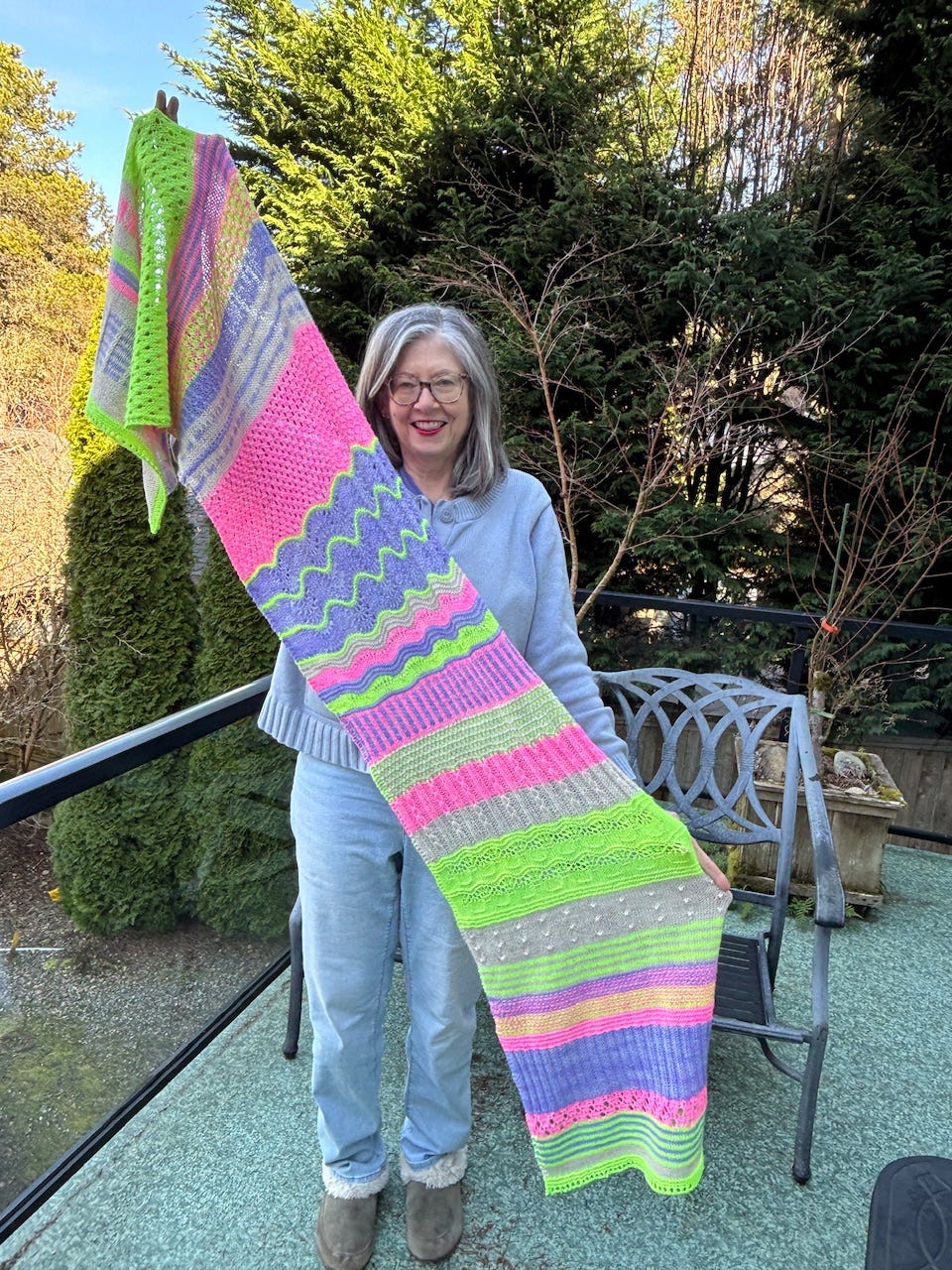 This was great fun to knit. It really didn’t take me four years to make this. I knit about six inches, then it went into the timeout pile when something new and shiny caught my eye. I picked it back up in mid January. I adore the colors. They’re bright and cheerful; just what I need for this not-quite-spring time of year. And it’s hard to get bored with all the different stitch patterns.