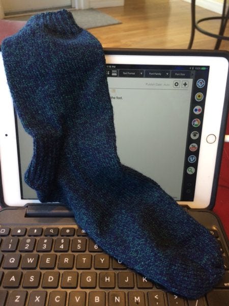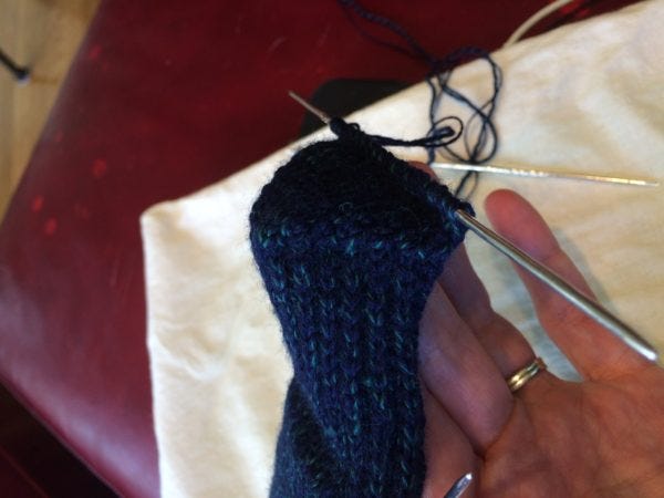 Then you pick up all the other half of the stitches and knit the foot.