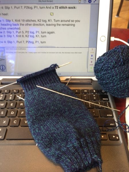 Then the magic happens, where you turn the heel into the little part that goes around under your foot.