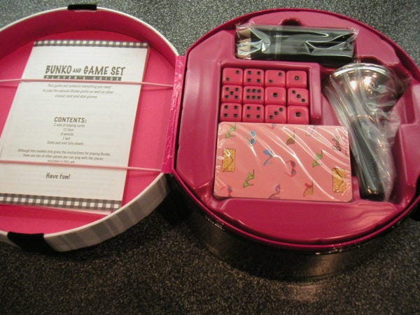 It's a Bunko card game, complete with Barbie cards.