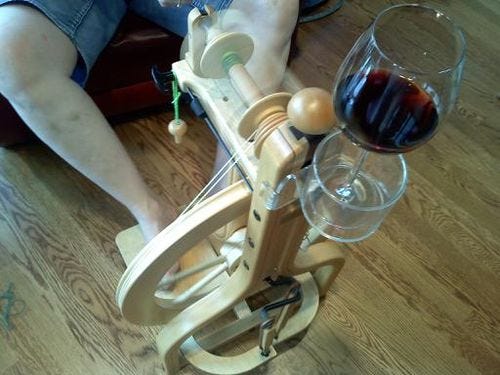 Spinning With WineThe Knitting DoctorAug 02, 2009ShareDon't mind me, I'm just spinning away. Real post to follow, soon. Really.PreviousNext