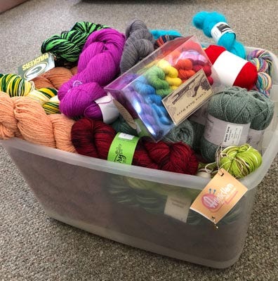I either need to knit faster or buy another plastic container. And no, I'm not going to admit publicly just how many of those boxes I have. Let's just say that I have it all recorded in a spreadsheet with photos, since if the house burned down, USAA would never believe I have that much invested without proof.