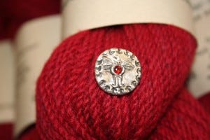 Those are just the most perfect thing for this pattern. They cost more than the yarn, but I could not resist. If the sweater wears out, I'll cut the buttons off and re-use them. The goldsmith who make these is Carolyn Kent, though she doesn't have her website up and running yet. These are silver, with real garnets in the center.