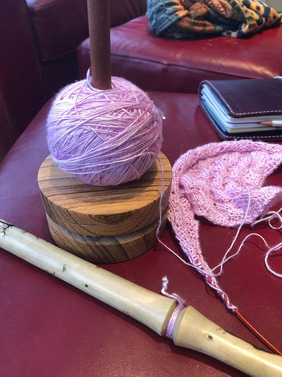 It took me about three hours to get it untangled and wound up. Isn’t that a pretty nostepinne? It’s made out of holly, made and sold by Dancing Goats on Etsy. They have some lovely tools if you are in the market for a little post holiday gift for you or someone you love.