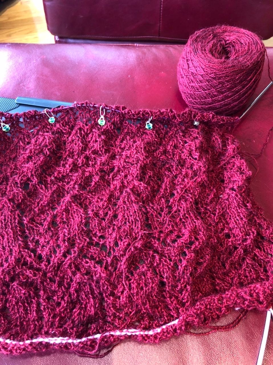 According to Ravelry, I started that in 2016, so it is just freaking time to finish it. As usual, that color is way off. It is more of a deep scarlet red. Once we get some sunshine around here I might get a decent photo.